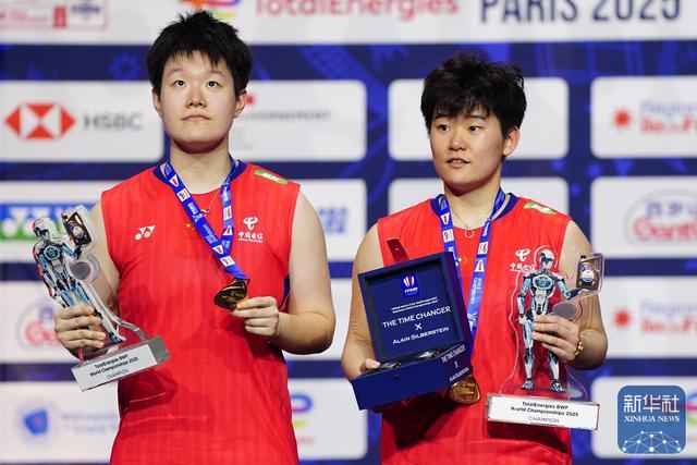 8月31日,在法国巴黎举行的2025年世界羽毛球锦标赛女子双打决赛中,中国组合刘圣书/谭宁2比1战胜马来西亚组合陈康乐/蒂娜,获得冠军。